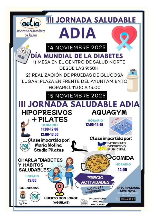 LISTADO DE EVENTOS PULSA SOBRE UN EVENTO PARA OBTENER MÁS INFORMACIÓN 15/11/2025 ÁGUILAS CON GAZA ... 15/11/2025 ¨"LOBA"... 15/11/2025 II JORNADA SALUDABLE ASOCIACIÓN DE DIABÉTICOS... 15/11/2025 PROGRAMA DE ATLETISMO EN LA CALLE ... 15/11/2025 Tal vez soñar... 15/11/2025 ÁGUILAS CON GAZA... 16/11/2025 BIOMARATÓN DE OTOÑO ... 22/11/2025 CONCIERTO DE SANTA CECILIA ... 22/11/2025 CONCIERTO DE SANTA CECILIA... 26/11/2025 PROGRAMA 25N EN ÁGUILAS ... 28/11/2025 BLACK NOVEMBER 2025... 28/11/2025 Exposición colectiva Taller de Cerámica ... 29/11/2025 XXI CERTAMEN DE TEATRO AFICIONADO ... 29/11/2025 CAMPEONES 2... 05/12/2025 BALDOSAS... 12/12/2025 SWING EN NAVIDAD...